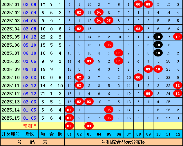 前区重号分析:上期开出2重号:03、12,最近10期有3期包含重号,本期预计重号转冷,不看好重号出现。