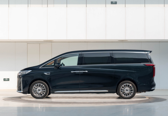 侧面线条简洁有力,悬浮式车顶设计让这台大家伙看起来没那么笨重。车尾的贯穿式尾灯在夜间点亮效果特别醒目,整体造型属于那种既商务又居家的类型。不过1960mm的车宽在城市里确实是个挑战,特别是老小区停车时得多打几把方向。