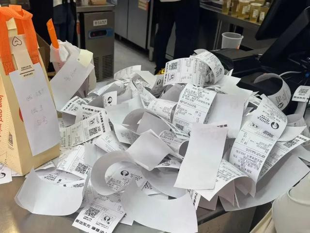 另据第一财经报道,7月12日上午十点半,北京一家沪上阿姨已经排到了四百多杯,外卖单堆叠在操作台上如座小山,店员已经不再出新的订单纸。混乱之中,店员已经无法按排号顺序来出单,店员喊着331号出餐,有外卖员来取195号的订单,得到的回复是“得找,找不出来。”有顾客前来问456号订单,一旁有人凉凉说道:二百一十几号都没找到呢。再有人来催单,店员已经无暇回复,只是举起手中长长的贴杯纸单,无声回答。十二点左右,该门店已闭店不再接新订单。