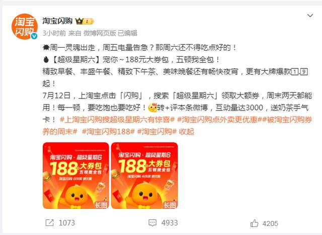 继续发放“超级星期六”188大券包